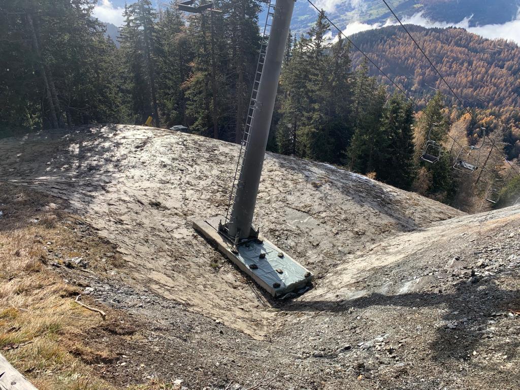 Der Sessellift Mast Nr. 10 musste "ertüchtigt" werden, was genau auf die Saisoneröffnung hin gelang.