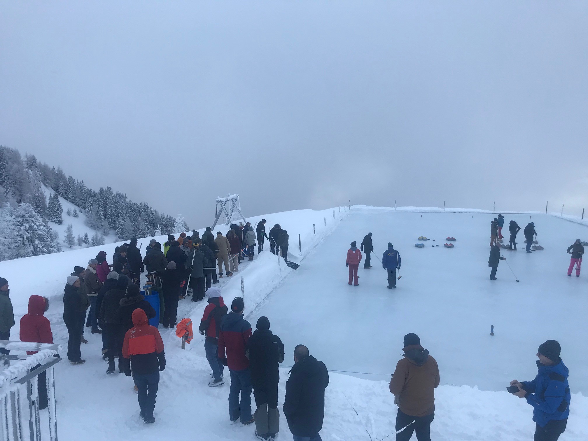 Eine Betrieb aus Baden besuchte uns mit über 50 Mitarbeitern auf dem Eis und spielten Curling und genossen das Mittagessen in unserer Hütte.